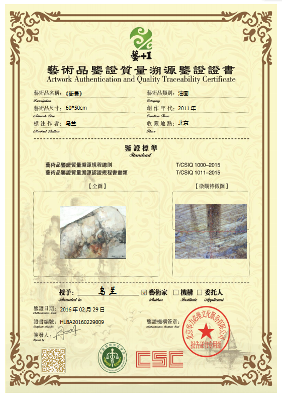 艺术品鉴证质量溯源鉴证证书