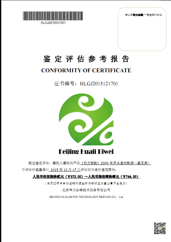 《东方雅韵》2009年乔木老树熟茶(紧压茶)