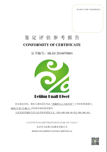 “典藏碧玉之天佑印章”