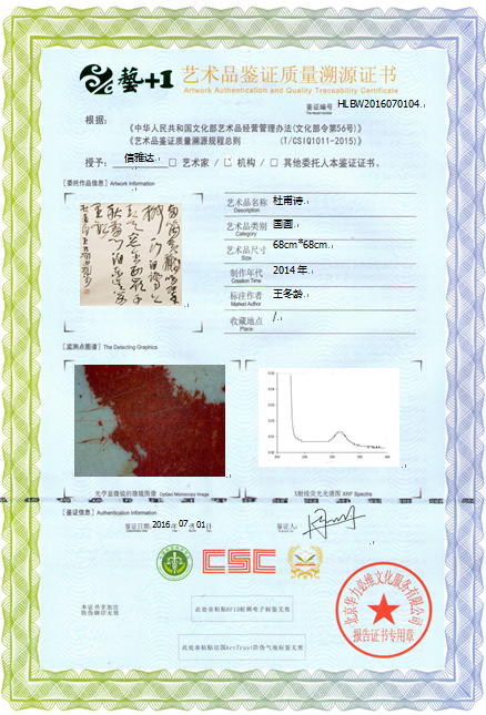 艺术品鉴证质量溯源鉴证证书