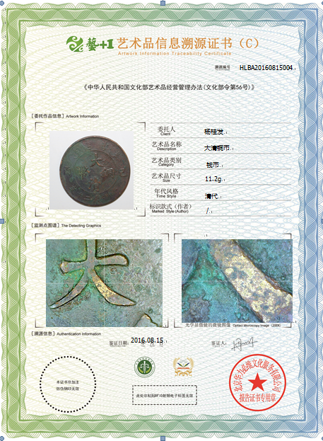 艺术品信息溯源鉴证证书