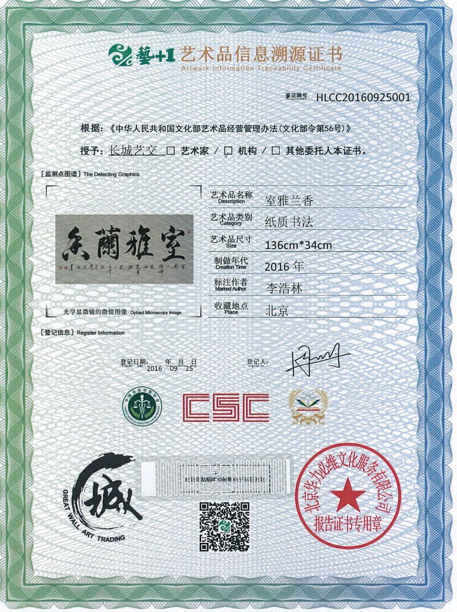 艺术品鉴证质量溯源鉴证证书
