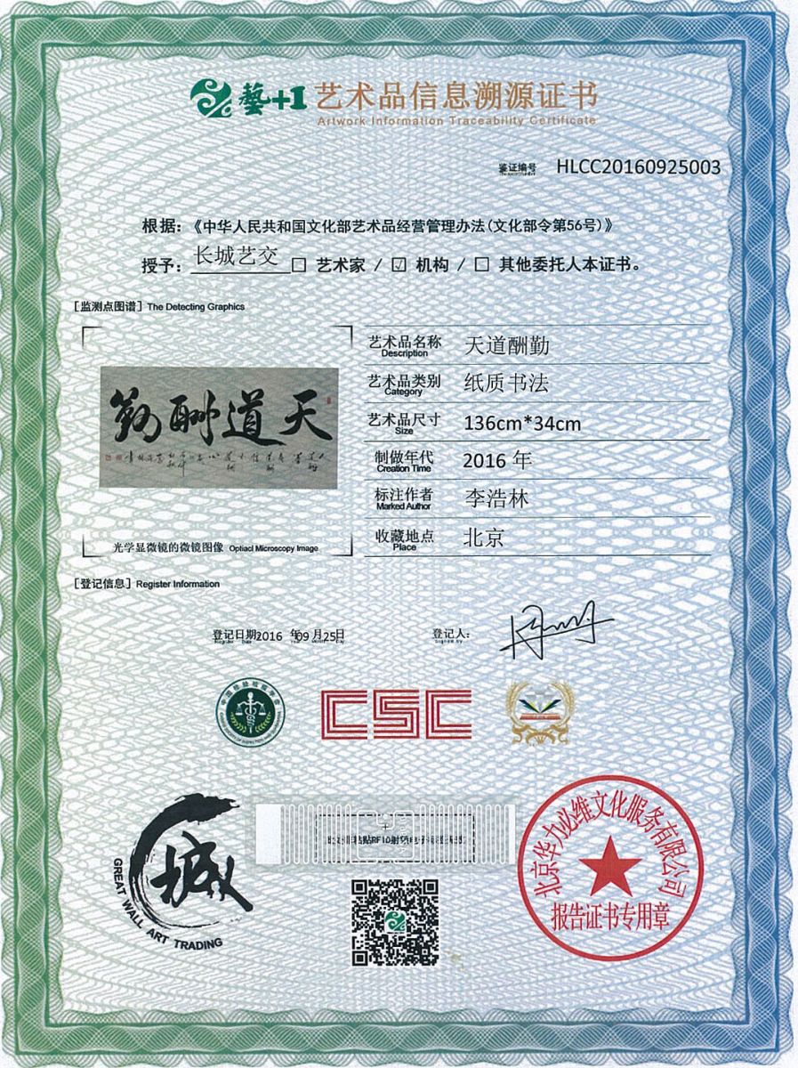 艺术品鉴证质量溯源鉴证证书