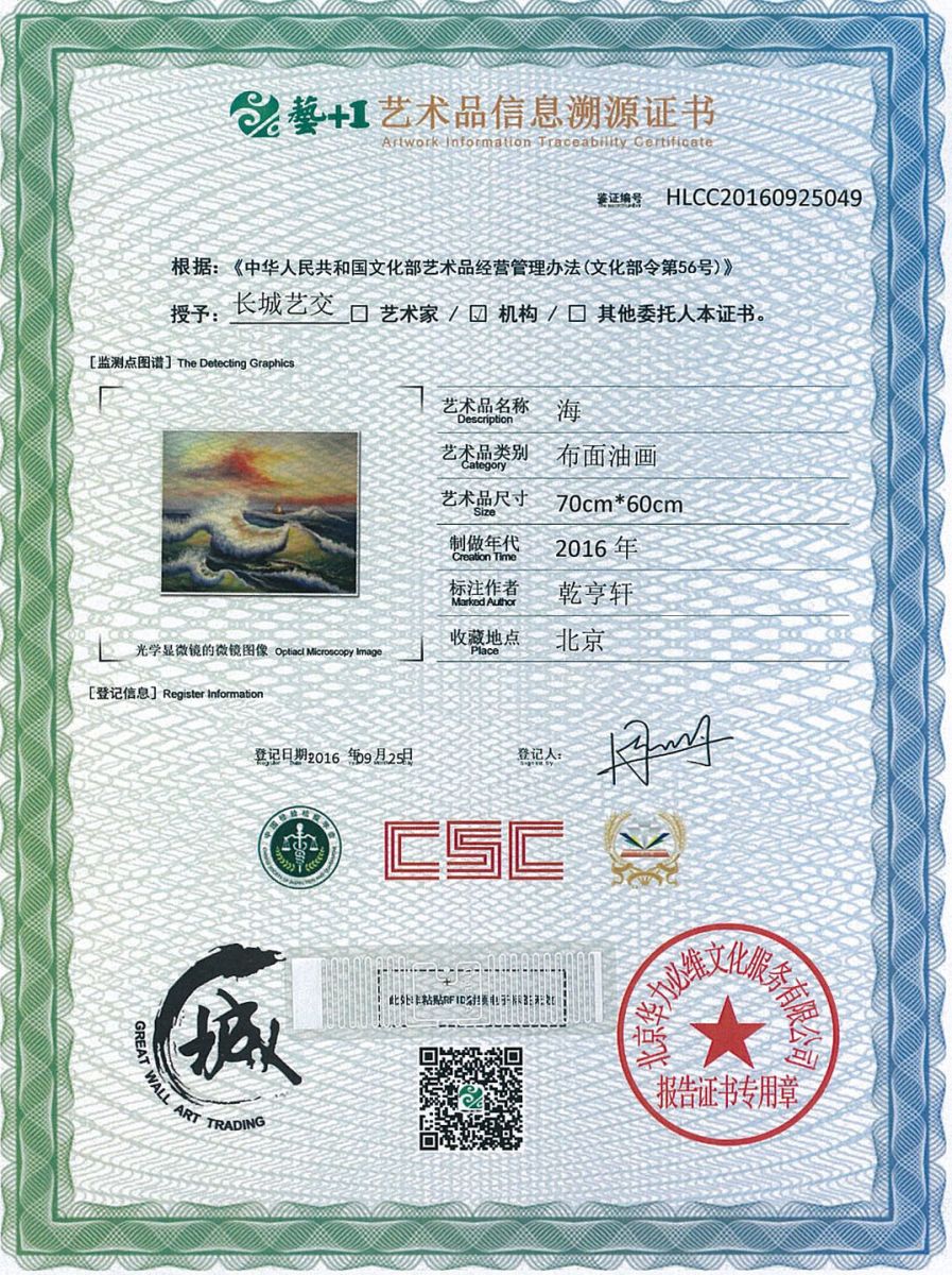 艺术品鉴证质量溯源鉴证证书