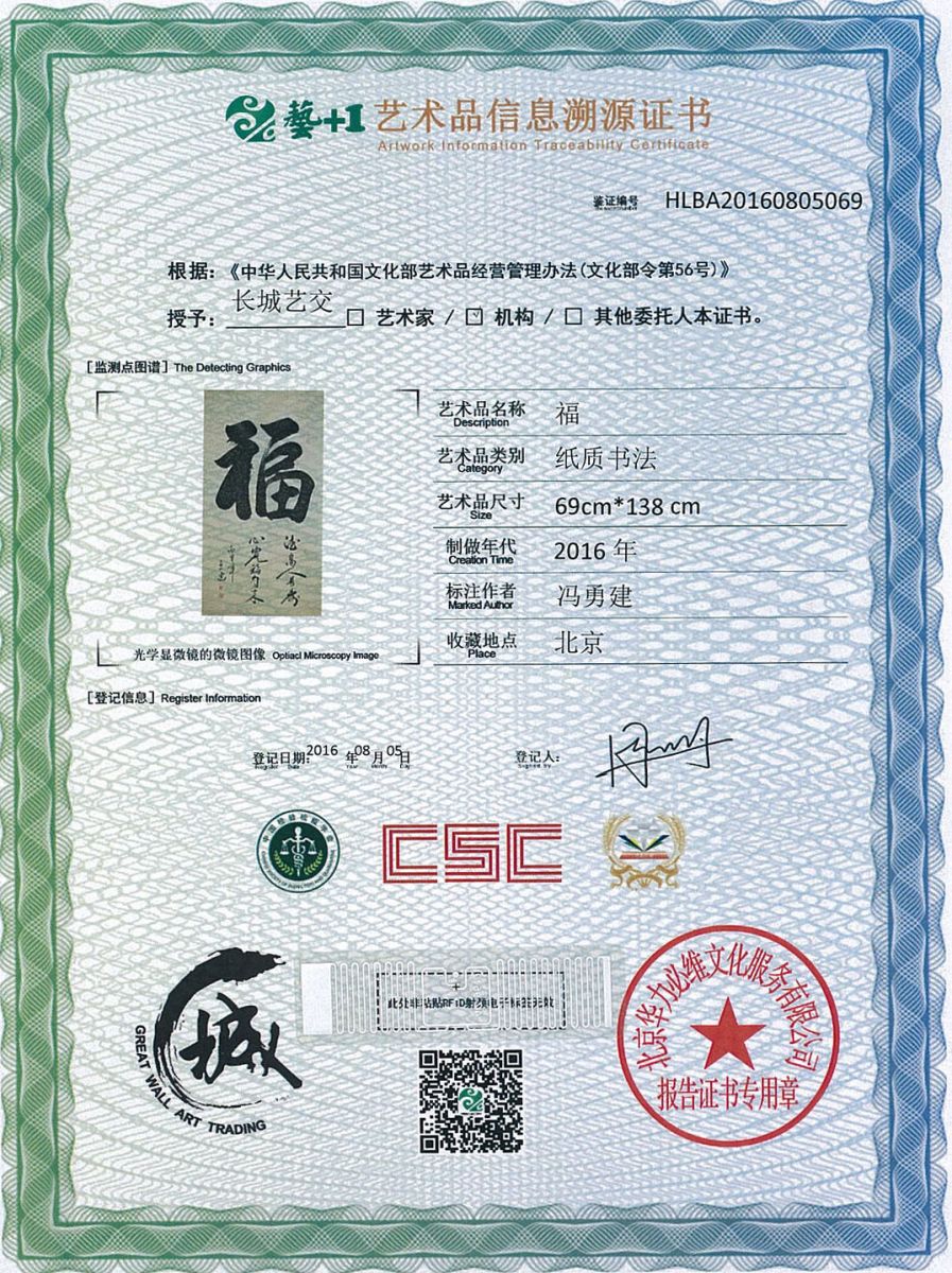 艺术品鉴证质量溯源鉴证证书