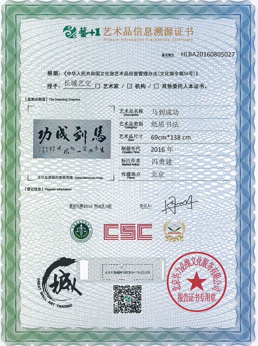 艺术品鉴证质量溯源鉴证证书