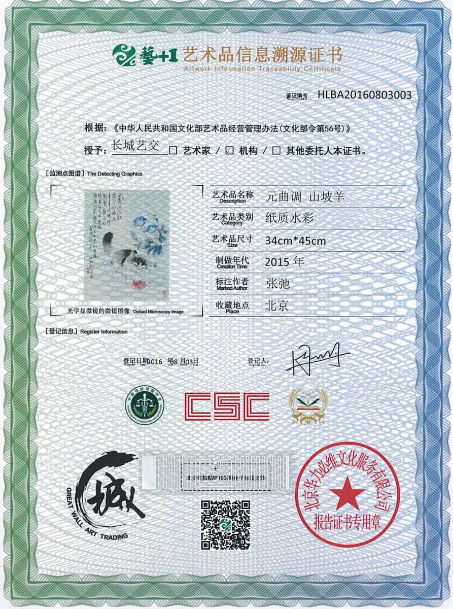 艺术品鉴证质量溯源鉴证证书
