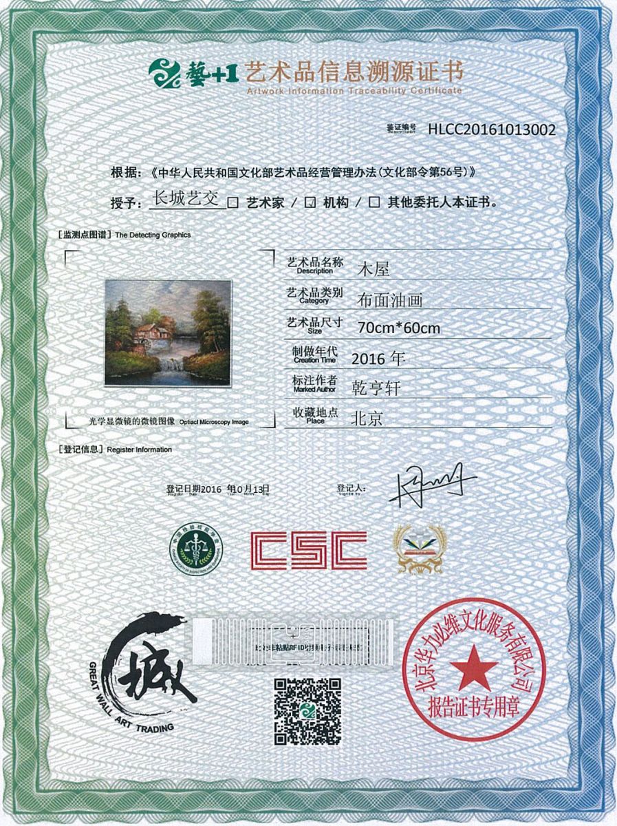 艺术品鉴证质量溯源鉴证证书
