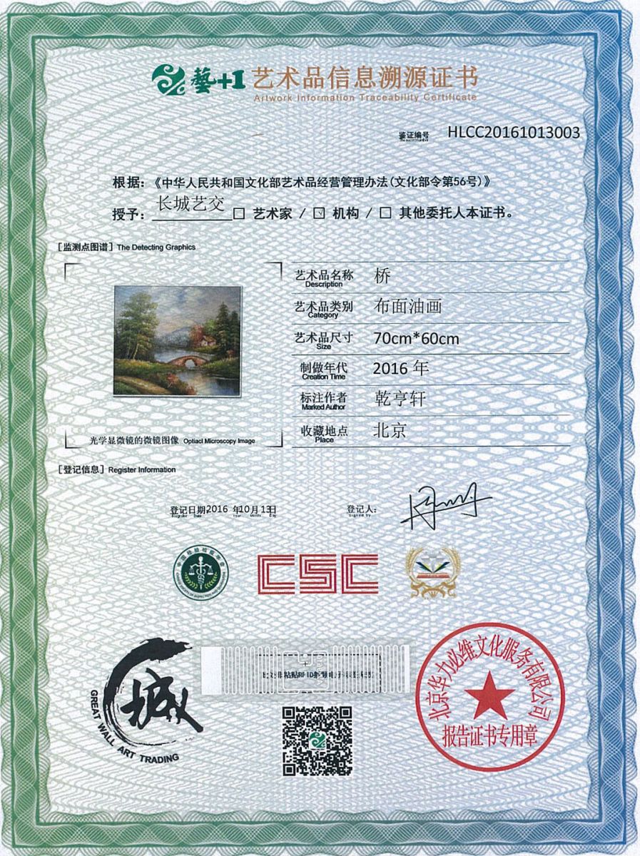 艺术品鉴证质量溯源鉴证证书