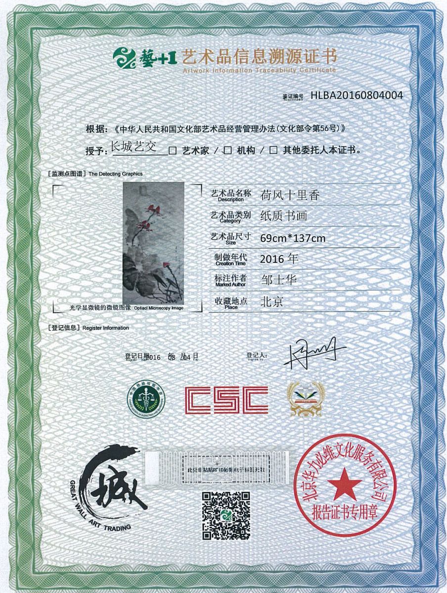 艺术品鉴证质量溯源鉴证证书