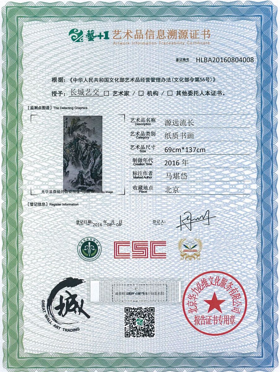 艺术品鉴证质量溯源鉴证证书
