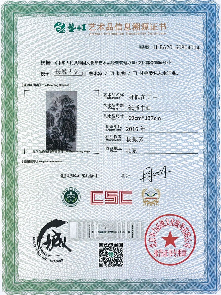 艺术品鉴证质量溯源鉴证证书