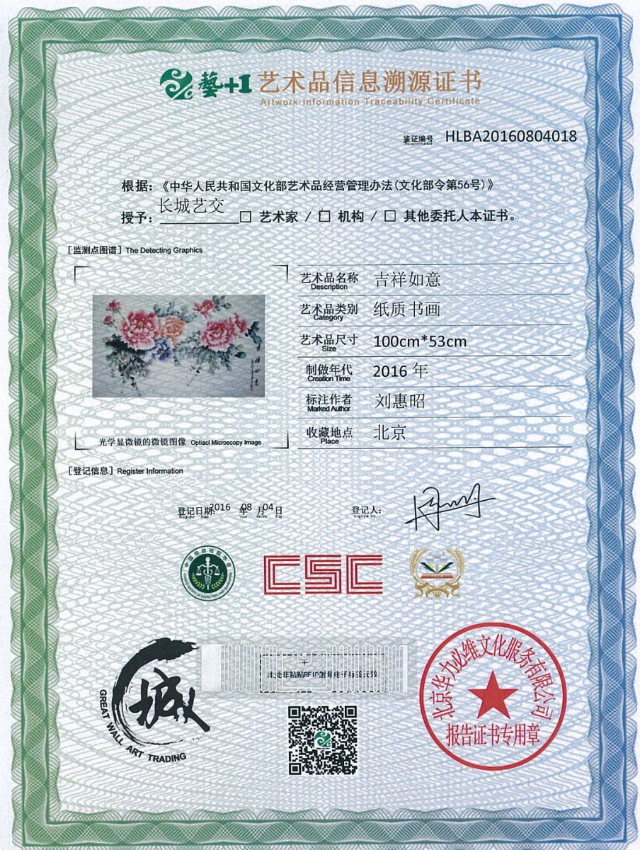 艺术品鉴证质量溯源鉴证证书