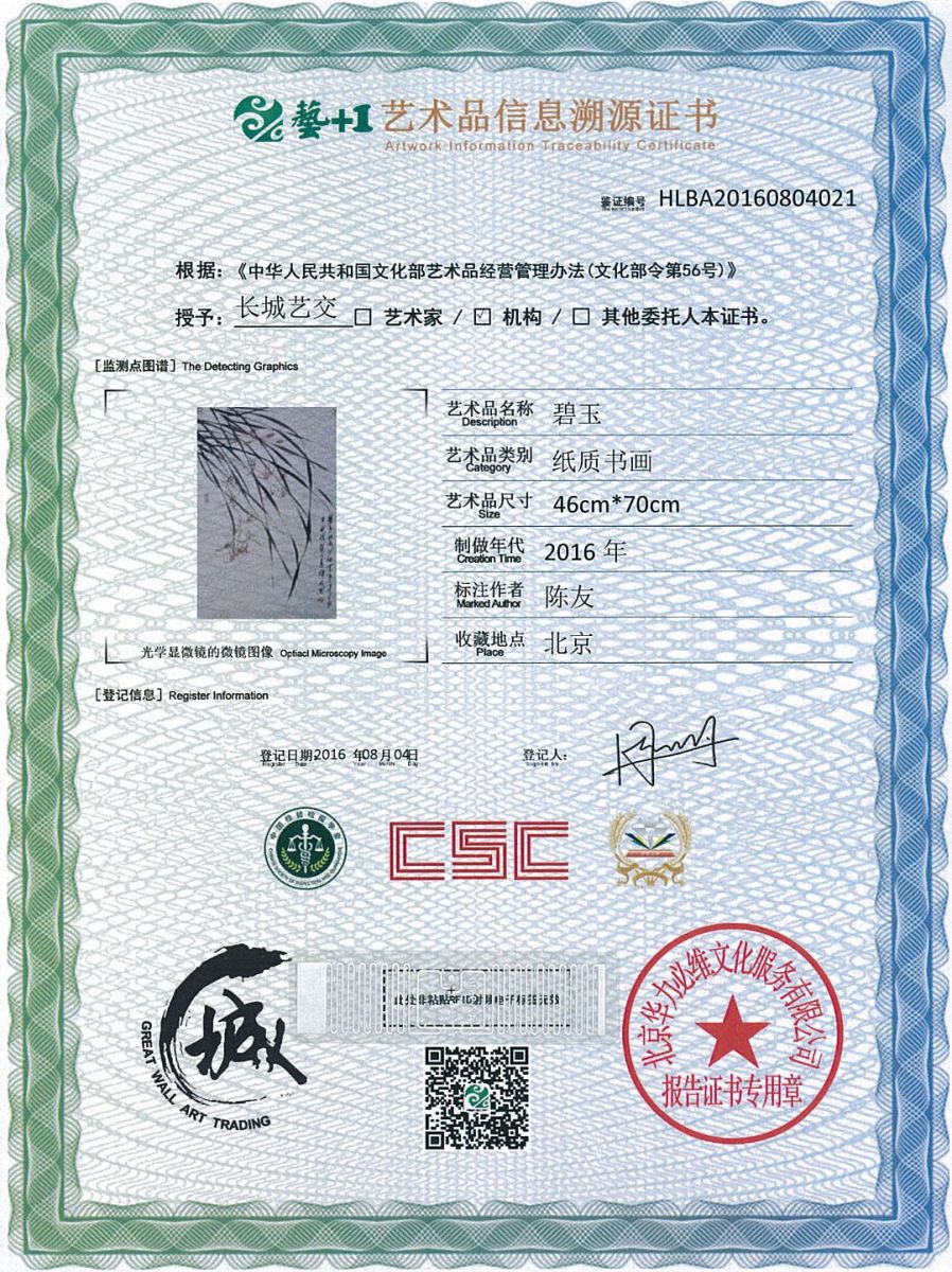 艺术品鉴证质量溯源鉴证证书