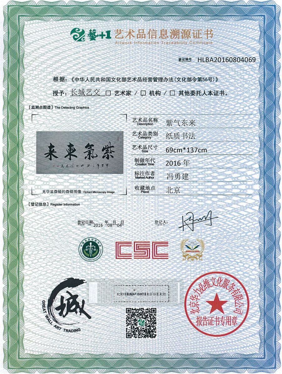 艺术品鉴证质量溯源鉴证证书