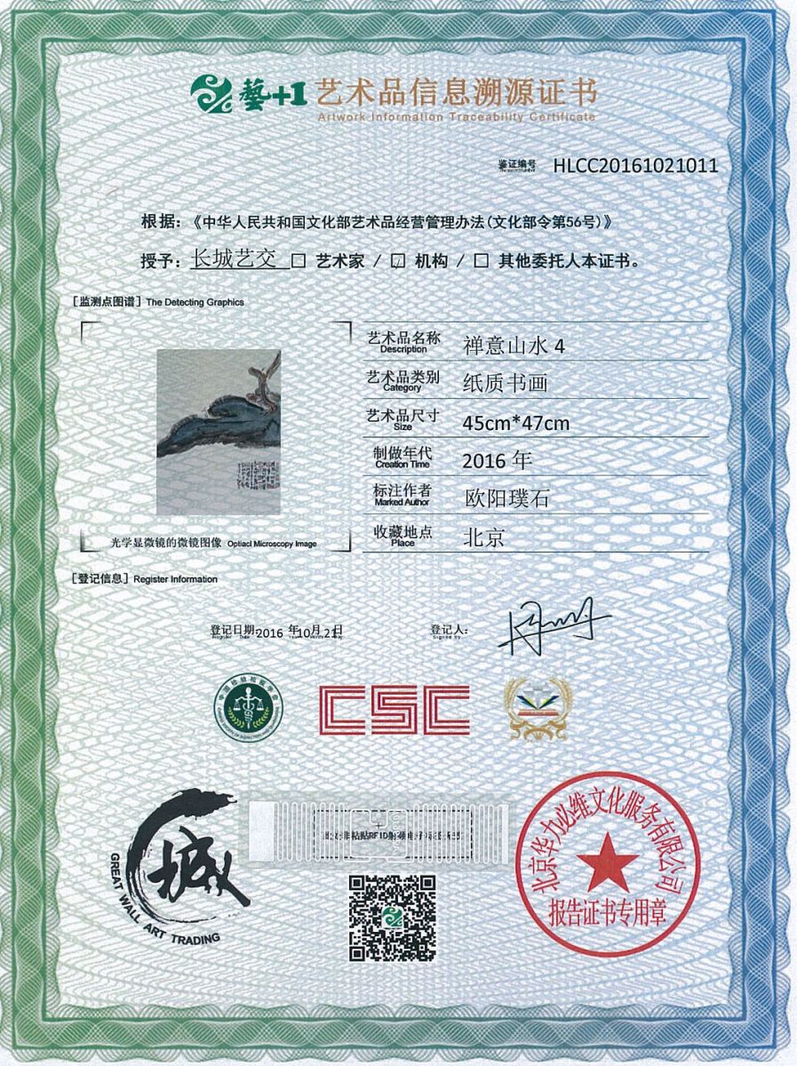 艺术品鉴证质量溯源鉴证证书