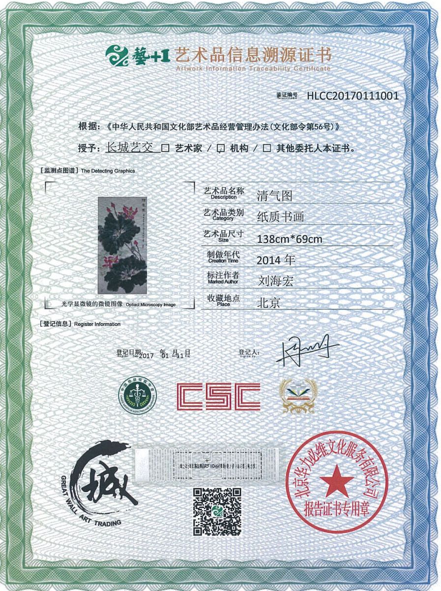 艺术品鉴证质量溯源鉴证证书
