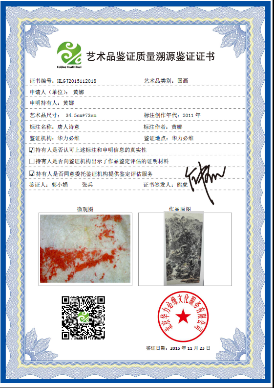 艺术品鉴证质量溯源鉴证证书