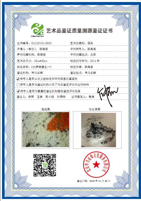 艺术品鉴证质量溯源鉴证证书