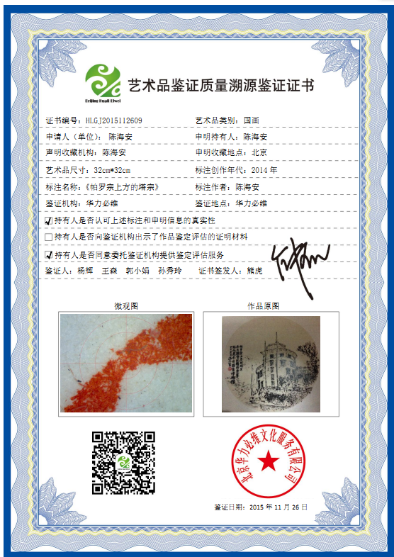 艺术品鉴证质量溯源鉴证证书