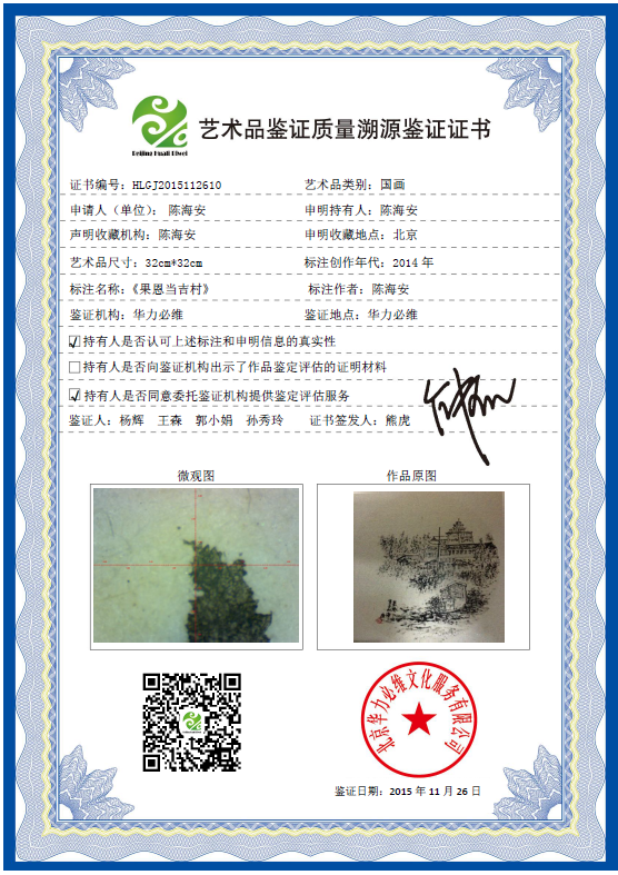 艺术品鉴证质量溯源鉴证证书