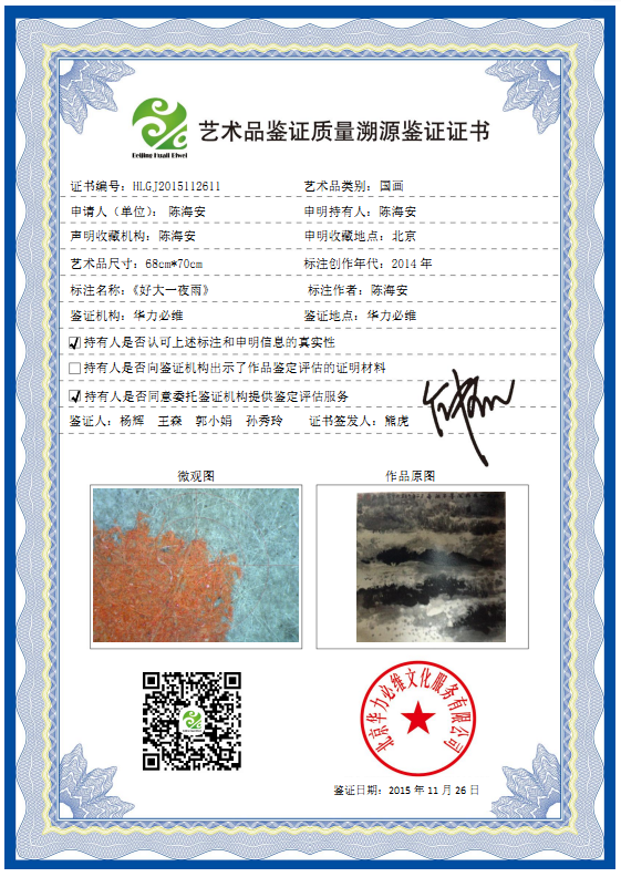 艺术品鉴证质量溯源鉴证证书