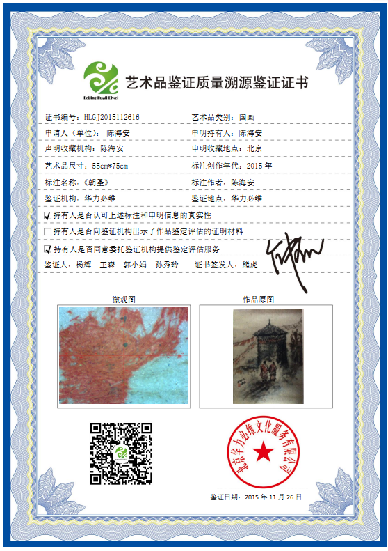 艺术品鉴证质量溯源鉴证证书