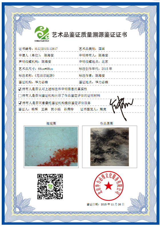 艺术品鉴证质量溯源鉴证证书