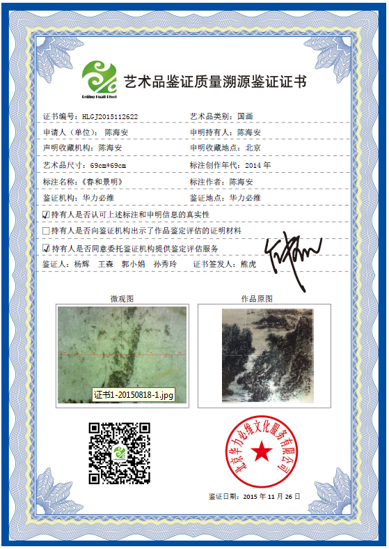 艺术品鉴证质量溯源鉴证证书
