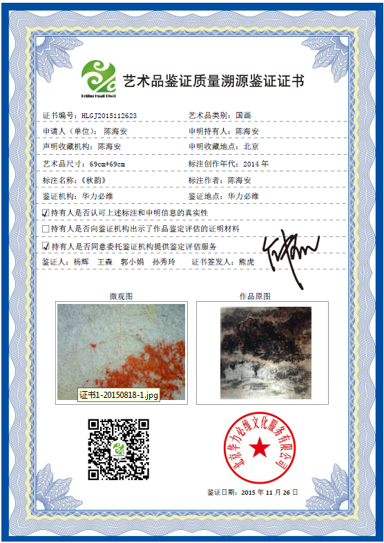 艺术品鉴证质量溯源鉴证证书