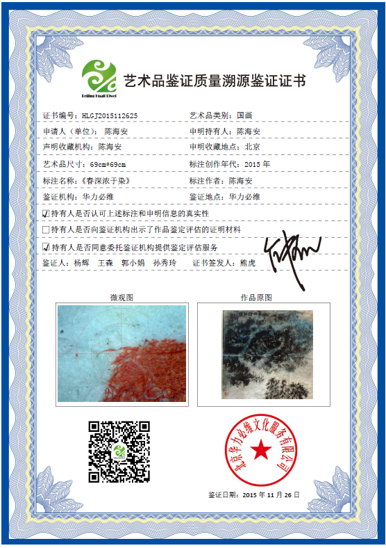 艺术品鉴证质量溯源鉴证证书