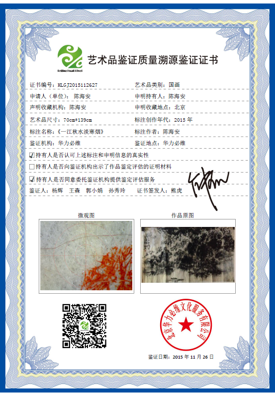 艺术品鉴证质量溯源鉴证证书