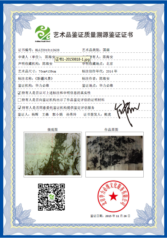 艺术品鉴证质量溯源鉴证证书