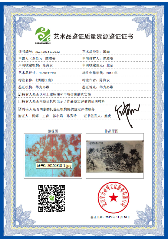 艺术品鉴证质量溯源鉴证证书