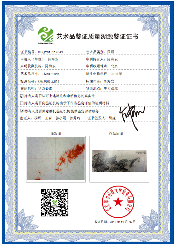 艺术品鉴证质量溯源鉴证证书