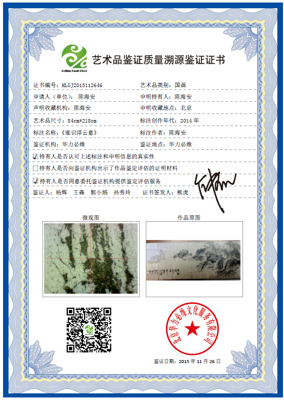 艺术品鉴证质量溯源鉴证证书
