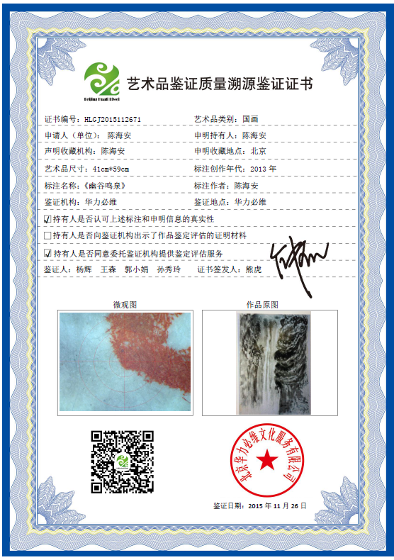 艺术品鉴证质量溯源鉴证证书