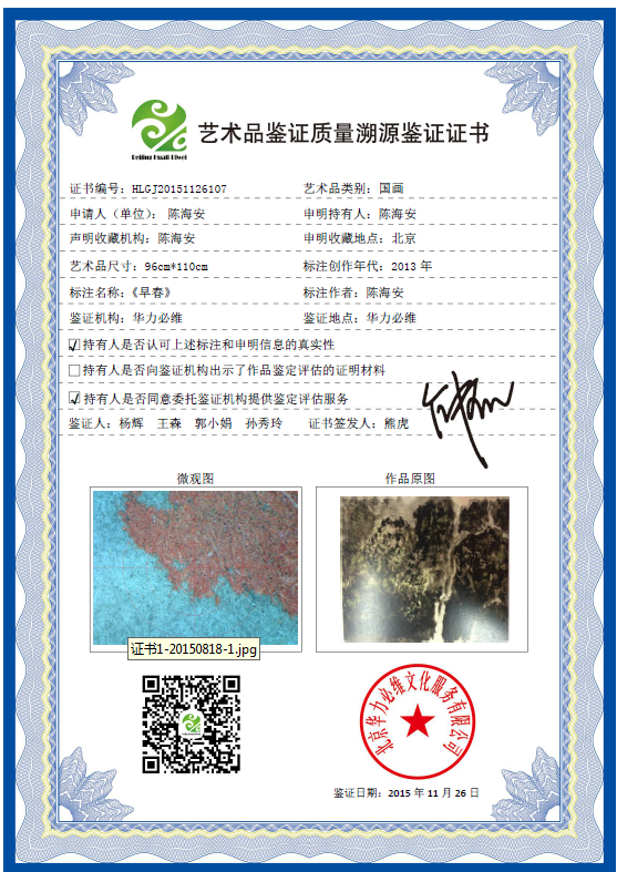 艺术品鉴证质量溯源鉴证证书