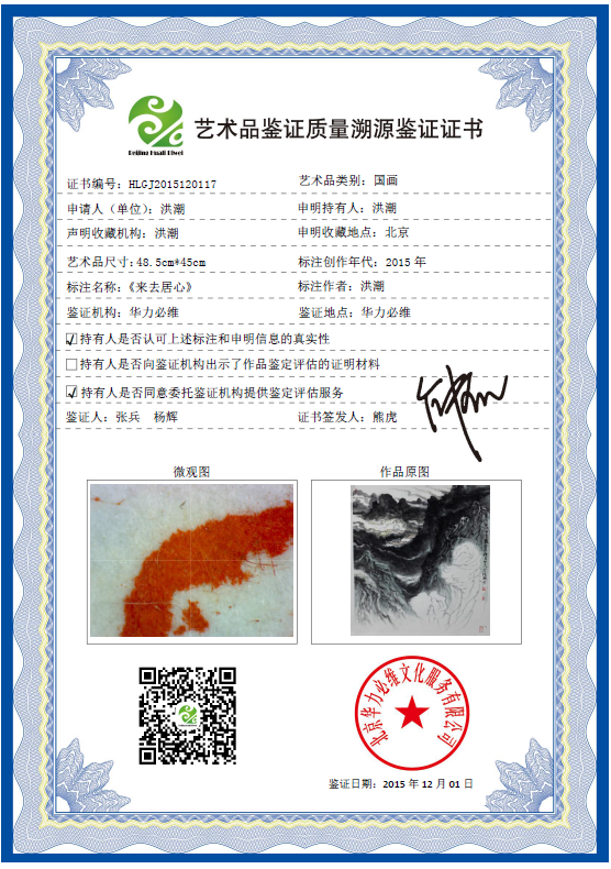 艺术品鉴证质量溯源鉴证证书