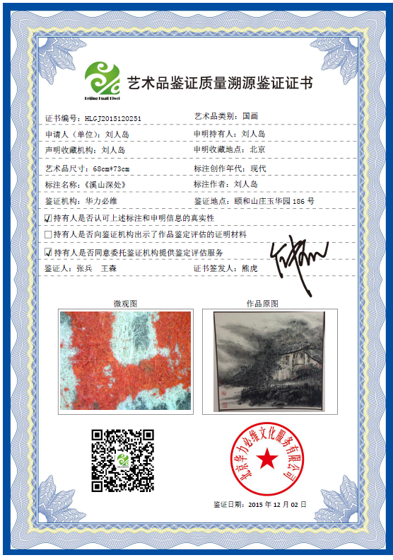 艺术品鉴证质量溯源鉴证证书