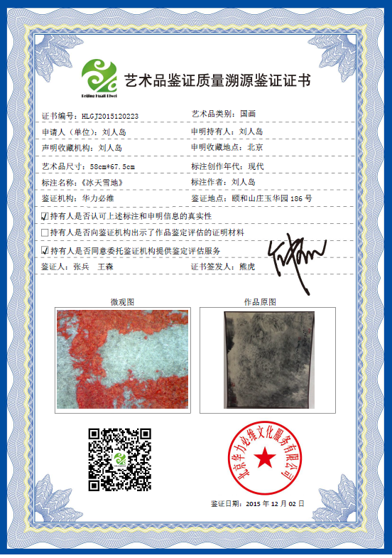 艺术品鉴证质量溯源鉴证证书