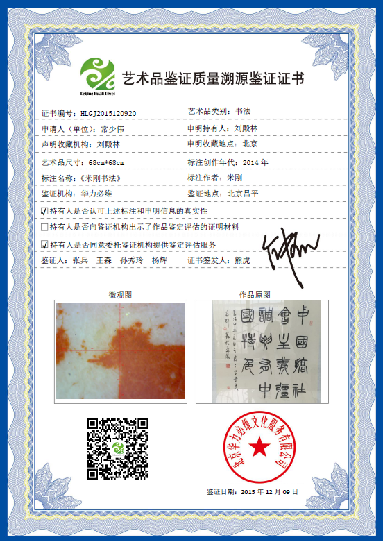 艺术品鉴证质量溯源鉴证证书