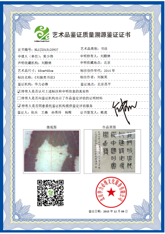 艺术品鉴证质量溯源鉴证证书