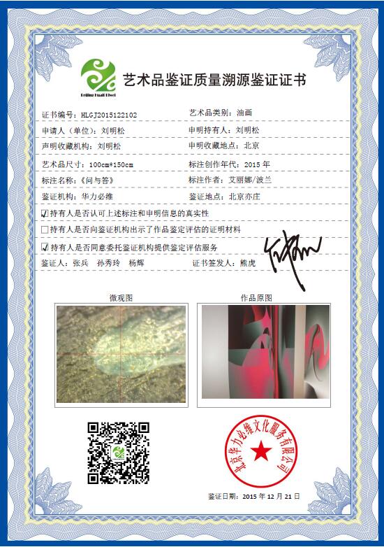 艺+1 艺术品鉴证质量溯源鉴证证书