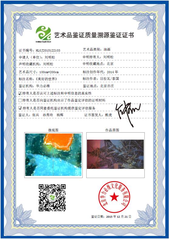 艺+1 艺术品鉴证质量溯源鉴证证书