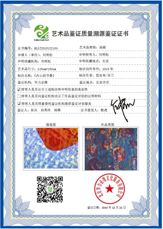 艺+1 艺术品鉴证质量溯源鉴证证书