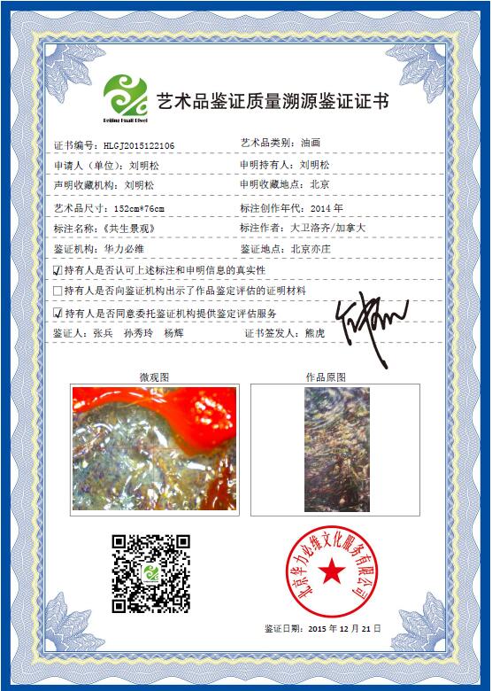 艺+1 艺术品鉴证质量溯源鉴证证书
