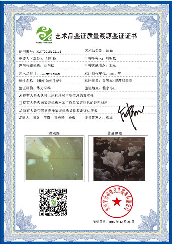 艺+1 艺术品鉴证质量溯源鉴证证书