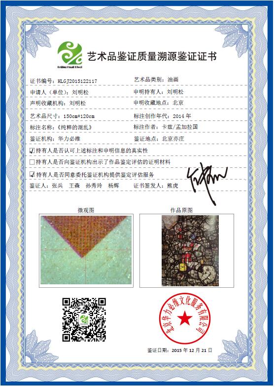 艺+1 艺术品鉴证质量溯源鉴证证书