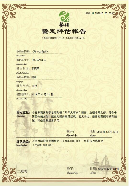艺+1 艺术品鉴证质量溯源鉴证证书